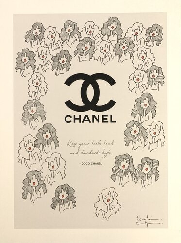 Der Chanel-Geist neu interpretiert von der französischen Popart-Künstlerin Caroline Montigneaux! Freude, Frische und Reinheit dieser Illustration Zeile für Zeile auf Papier.