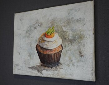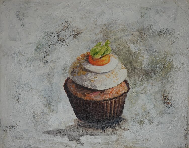 Mit Acrylfarben habe ich eine Momentaufnahme geschaffen, die zwischen Realität und Traum schwebt. Dieser kleine Kuchen fängt die süße Zerbrechlichkeit des Augenblicks ein und lädt ein, das Gewöhnliche zu feiern. Die Texturen und Schatten erzeugen eine lebendige Tiefe, die Wärme und Geborgenheit ausstrahlt – perfekt, um jedem Raum eine charmante und einladende Atmosphäre zu verleihen.