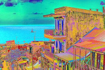 In diesem Werk habe ich die pulsierende Seele einer Küstenstadt eingefangen, eingehüllt in eine Explosion kräftiger, modernistischer Farben. Jeder intensive Farbton verkörpert urbane Energie und den Ruf des unendlichen Horizonts und lädt zum Nachdenken und Träumen ein. Dieses Bild verwandelt Ihren Raum in einen Ort, an dem Leidenschaft und Freiheit koexistieren und im Rhythmus des Stadtlebens vibrieren.