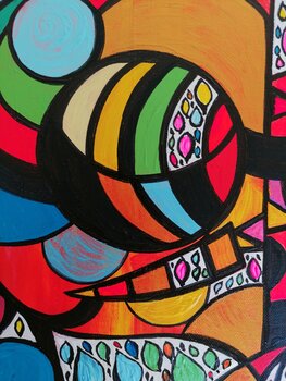 LADY NEW YORK RAP ist mit Acrylfarben und Filzstift auf Leinwand gemalt. LADY NEW YORK RAP zieht mit ihren geometrischen Elementen , bunten und grellen Farben den Blick auf sich. LADY NRW YORK RAP ist eine taffe Frau, mutig, modern provokant. Sie hat ihren eigenen Stil und macht ihr "eigenes Ding, egal, was die anderen sagen" (Zitat Udo Lindenberg).