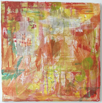 In dieser leichten Acrylmalerei, habe ich den Farbauftrag gemalt, gespachtelt, collagiert und Zeichen gesetzt, die den Blick auf der Entdeckungsreise durch das Bild leiten. Kann mit ohne Titel, L3.2 als Dyptichon gehängt werden.