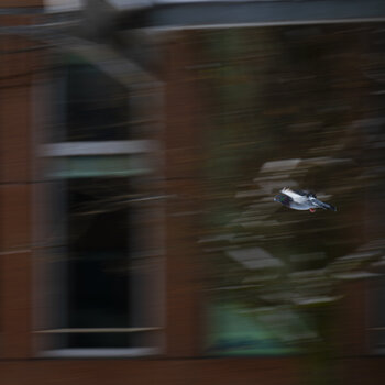 Mit diesem Werk habe ich die rasante Dynamik des Alltags durch die bewegte Aufnahme einer fliehenden Taube eingefangen. Die experimentelle Fotografie zeigt den Moment im Fluss der Zeit und Energie. Mein Ziel war es, die Kraft und Freiheit im schnellen Flug zu vermitteln, die in jedem Raum eine lebendige, inspirierende Atmosphäre schafft.
