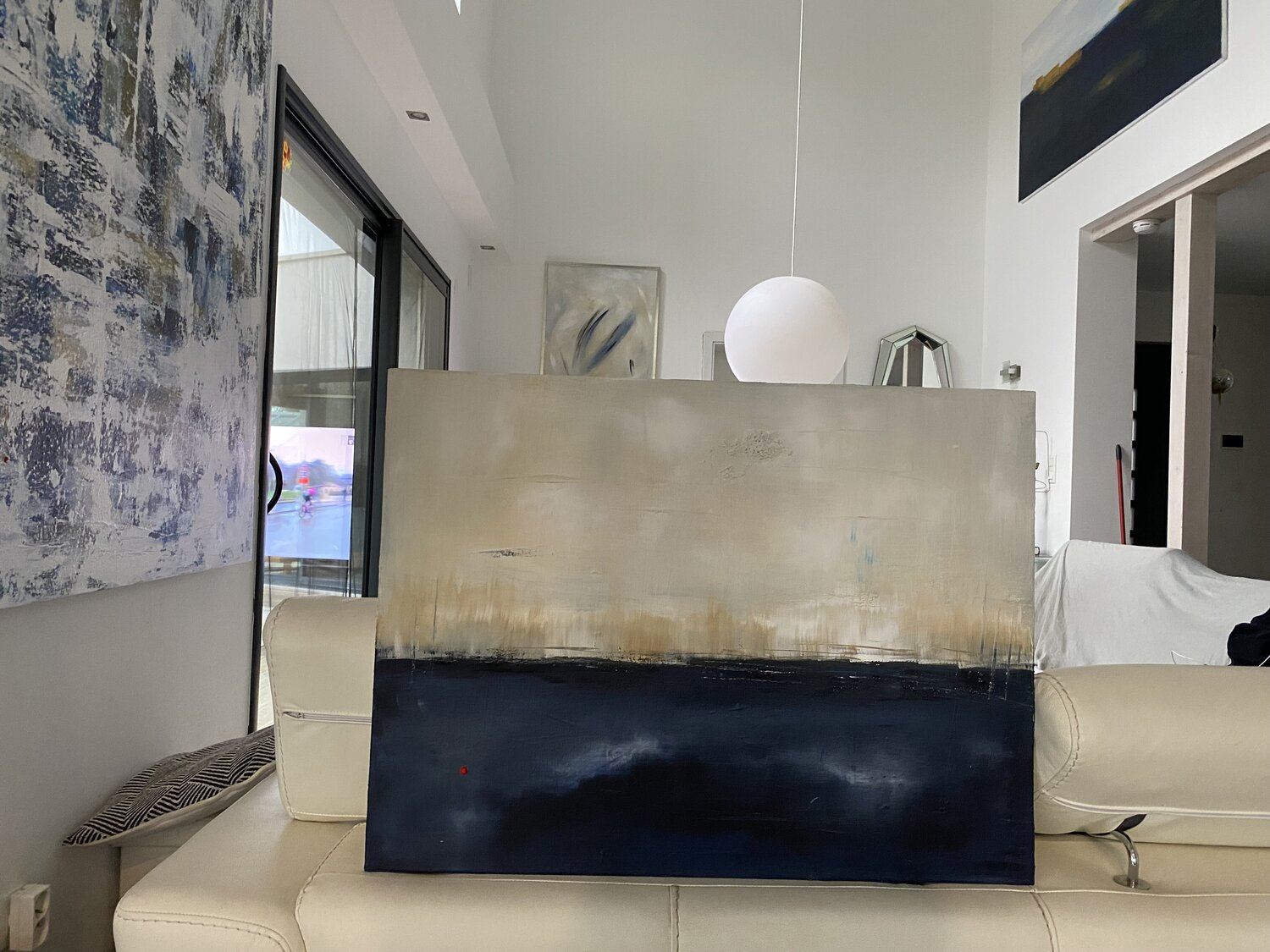 Ein Kunstliebhaber, Kauf getätigt am Juni 2024: "Averse de bleus", Acryl auf Leinwand , 45,7x35in