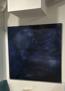 Ein Kunstliebhaber, Kauf getätigt am Juni 2024: "Averse de bleus", Acryl auf Leinwand , 45,7 x 35 in