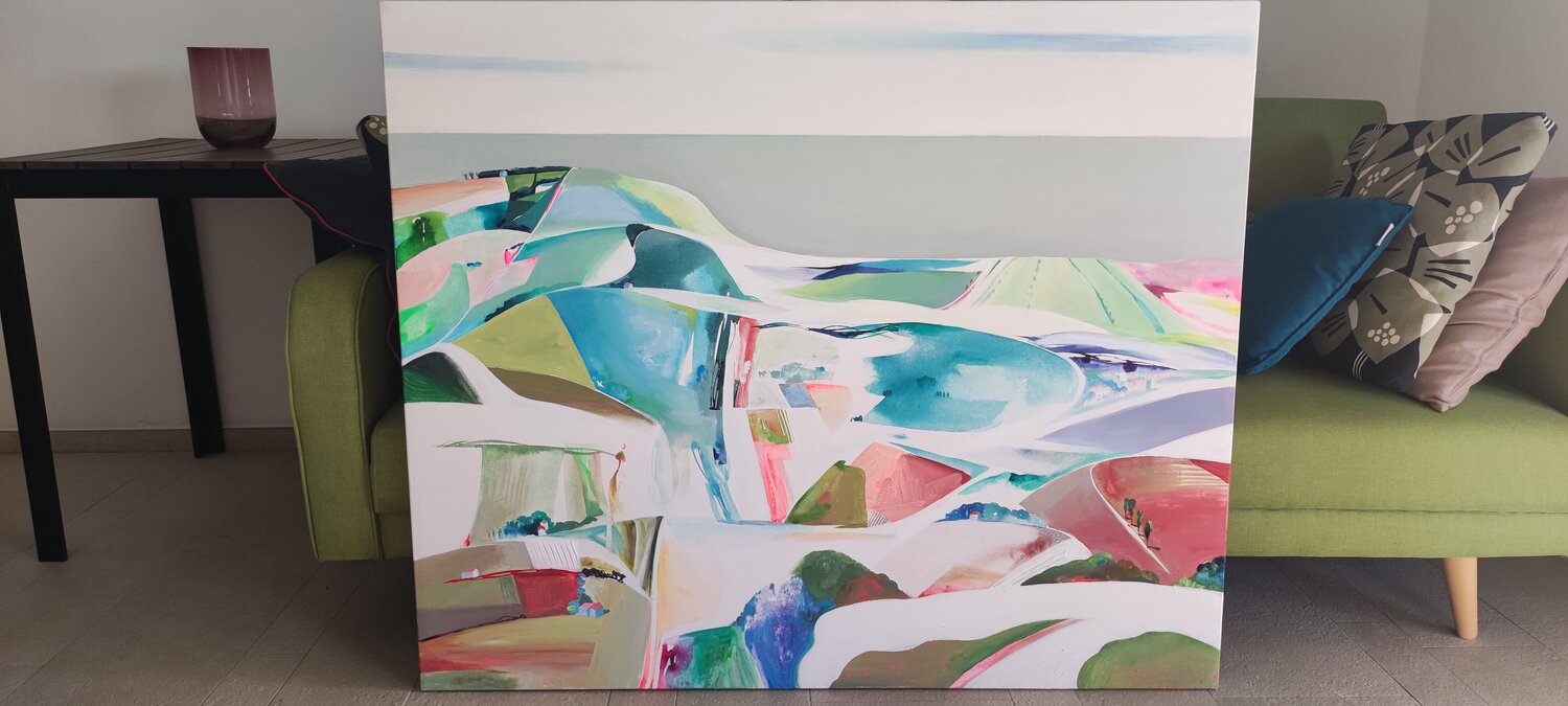 Die Reihen der Feldfrüchte, die Häuser, die verspielte, abstrakte Natur. Der Moment vor dem Regen. Gleichmäßiges, melancholisches Licht und der frische Duft des Frühlings. Der sorgfältige und präzise Umgang mit Wasser ist wichtig, denn gut verteilt erzeugt es Licht, ein grundlegendes Element meiner Landschaften. Oft lasse ich Flächen unbemalt, leer, doch sie sind in Wirklichkeit voll, erfüllt vom aufmerksamen Blick des Betrachters, der alle dargestellten… Elemente miteinander verbindet.