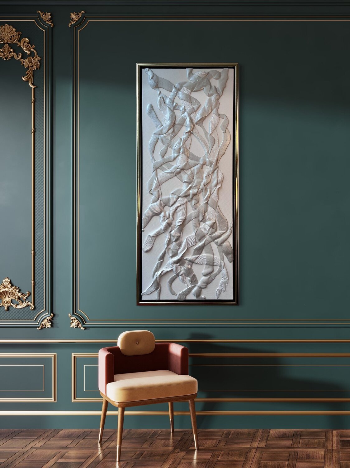 In meiner Arbeit habe ich die Dynamik des Lebens durch abstrakte, gewundene Formen in Textur eingefangen. Energetische Linien und Strukturen fließen und verweben sich, ähnlich wie die beständige Bewegung des Seins – ein kontinuierliches Werden und Vergehen. Diese Komposition strahlt eine faszinierende Lebendigkeit aus, die Betrachter inspirieren und eine kraftvolle Atmosphäre in jedem Raum schaffen soll.