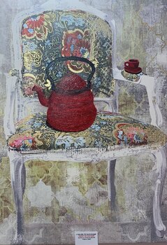 In diesem Werk wollte ich den Moment zwischen Realität und Traum einfangen, in dem das Alltägliche zu einer metaphysischen Erfahrung wird. Der Kontrast zwischen dem antiken Stuhl und der leuchtend roten Teekanne erzeugt einen surrealen Dialog und lädt den Betrachter ein, über die Magie nachzudenken, die in den einfachsten Gesten verborgen liegt. Es bringt eine geheimnisvolle und andeutungsvolle Energie in mein Zuhause und verwandelt das Gewöhnliche… in etwas Zauberhaftes.
