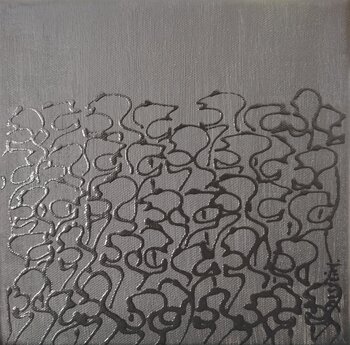 In dieser Arbeit habe ich die Spontaneität der Outsider-Kunst genutzt, um ein Geflecht organischer Formen aus Acryl zu schaffen. Inspiriert von Minimalismus und Pop-Art. Die komplett schwarze Leinwand spielte mit dem Licht. Tatsächlich heben sich die glänzenden Zeichen vom matten Hintergrund ab. Dieses Stück wird einen Hauch von Originalität und eine fesselnde Präsenz verleihen.