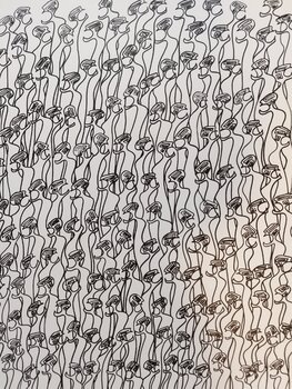 In dieser Arbeit habe ich Wiederholung und Einfachheit durch einen Dialog zwischen Art Brut und Minimalismus erkundet. Mit Acrylfarbe kann ich eine figurative Perspektive mit geometrischen Akzenten ausdrücken. Obwohl jede Form elementar ist, erzählt sie einen Teil unserer kollektiven Geschichte und bietet mit jedem Blick eine neue Bedeutung. Dieses maximalistische Gemälde strahlt fesselnde Energie aus und haucht dem Raum, den es einnimmt, Leben und… Konversation ein.