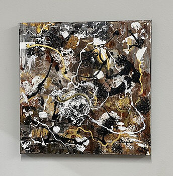 Dieses Gemälde birgt eine rohe Energie, die durch Schichten erdiger Gold-, Schwarz- und Weißtöne entsteht und den lebendigen Puls wiedererweckter, alter Geschichten einfängt. Die wirbelnden Formen verkörpern einen zeitlosen Tanz und lassen Ihr Zuhause mit dynamischer Bewegung und Wärme erfüllen. Jeder Pinselstrich ist von Leidenschaft und Geheimnis geprägt und weckt Neugierde und eine tiefere Verbindung zu Ihrem Raum.