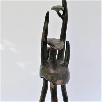 Bronzeskulptur im Wachsausschmelzverfahren hergestellt. Die Skulptur wurde zuerst in Wachs hergestellt, geformt und dann wurde die Bronze in die Hohlform gegossen. Somit ist die Skulptur ein Unikat (1/1). Das Stück wurde dann patiniert und dann gewachst. Das Gewicht beträgt 2,2 kg. Es kann im Freien ausgesetzt werden.
