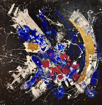 „Electric Soul“ ist eine Energieexplosion, die in der Dunkelheit der Leinwand eingekapselt ist. Mit kräftigen Strichen in Weiß und Blau strahlt dieses abstrakte Werk eine elektrisierende Lebendigkeit aus, die den Betrachter vom ersten Moment an in seinen Bann zieht. Schwarze und weiße Blitze tanzen in Harmonie und erzeugen einen dynamischen Kontrast, der die Fantasie anregt und die Wahrnehmung herausfordert. Im Mittelpunkt dieser Komposition steht… ein Hauch von Violett, wie ein geheimnisvolles Flüstern, das dem visuellen Erlebnis Tiefe und Nuancen verleiht. Die explosiven Striche verflechten sich und bilden ein eigenes Universum, in dem Emotion und Kreativität in einer Symphonie aus Formen und Farben verschmelzen. „Electric Soul“ lädt den Betrachter ein, in eine introspektive Reise einzutauchen, bei der der Geist von Einschränkungen befreit wird und sich der transformativen Kraft der Kunst hingibt. Es ist ein Fenster ins Unbekannte, ein Ausdruck der Seele, der über Worte hinausgeht und seine Stimme in der Reinheit der Bildsprache findet. In dieser Arbeit entdeckt der Betrachter nicht nur