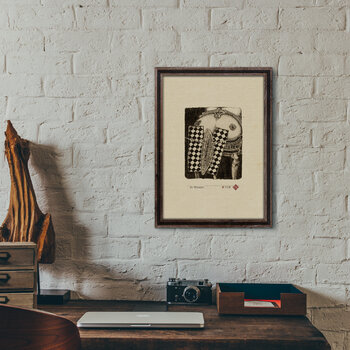 In diesem Kunstwerk habe ich eine Mischung aus Surrealismus und Symbolismus verwendet, um eine faszinierende Erzählung rund um Themen wie Zeit und Wahrnehmung zu schaffen. Die karierten Muster und fragmentierten Elemente spiegeln die Komplexität des Lebens und die oft unzusammenhängende menschliche Erfahrung wider. Ich habe Vintage-Töne und einen figurativen Stil gewählt, um ein Gefühl zeitlosen Staunens hervorzurufen und den Betrachter zu ermutigen,… über die Feinheiten seines eigenen Lebens nachzudenken. Dieses Stück soll eine nachdenkliche Ruhe vermitteln und sich mit seiner sanften Faszination und zum Nachdenken anregenden Komposition nahtlos in jeden Raum einfügen. Limitierte Auflage von 29 Fine Art Giclée-Drucken, gedruckt in Deutschland auf feinstem säurefreiem handgeschöpftem Papier. Digital verbessert. Vom Künstler gestempelt, nummeriert und signiert. Das Original ist eine Federzeichnung. Größe: 21 x 30 cm.