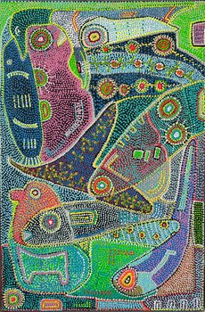 Als es fertig war, erinnerte es sowohl mich selbst als auch andere Betrachter stark an Kunst im Aboriginal-Stil, obwohl… das gar nicht der Gedanke dahinter war.