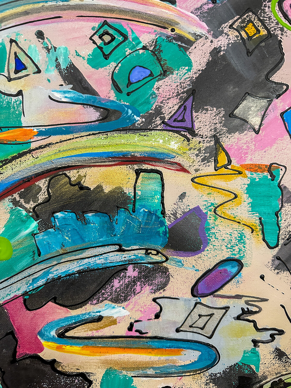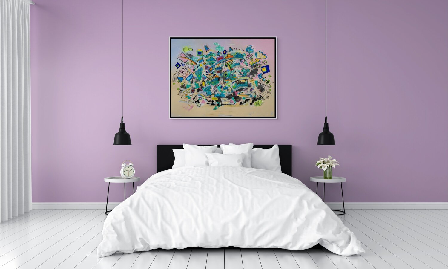 Ein Kunstliebhaber, Kauf getätigt am September 2024: "All Shapes, Sizes, Colors, Layers, And Orientations", Acryl auf Leinwand , 36 x 48 in