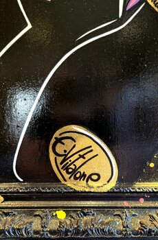 Ich wollte in diesem lebendigen Pop-Art-Werk Kühnheit und Verspieltheit einfangen. Durch diese farbenfrohe Mischung aus Comics und Graffiti drücke ich eine lebendige und unkonventionelle Energie aus, voller Humor und Geheimnis. Dieser elegante und verschmitzte Charakter bringt Dynamik und Freude in Ihr Zuhause und lädt mit jedem Blick zum Lächeln und zur Leichtigkeit ein.