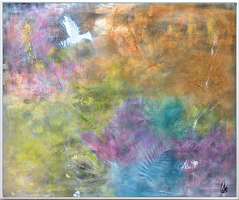 Dove of Peace - Abstraktes Acrylbild, gerahmtes Kunstwerk