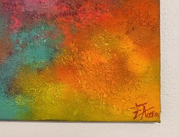 Dieses Werk entstand aus einem Ausbruch innerer Emotionen, in dem Farbe und Textur zu einem lebendigen und freien Universum verschmelzen. Ich wollte Energie und Bewegung vermitteln und jedem Betrachter ermöglichen, etwas Neues zu entdecken. Es wird in Ihren Räumlichkeiten eine ständige Einladung zu Inspiration und Freude sein und den Raum mit Leben und Dynamik erfüllen.