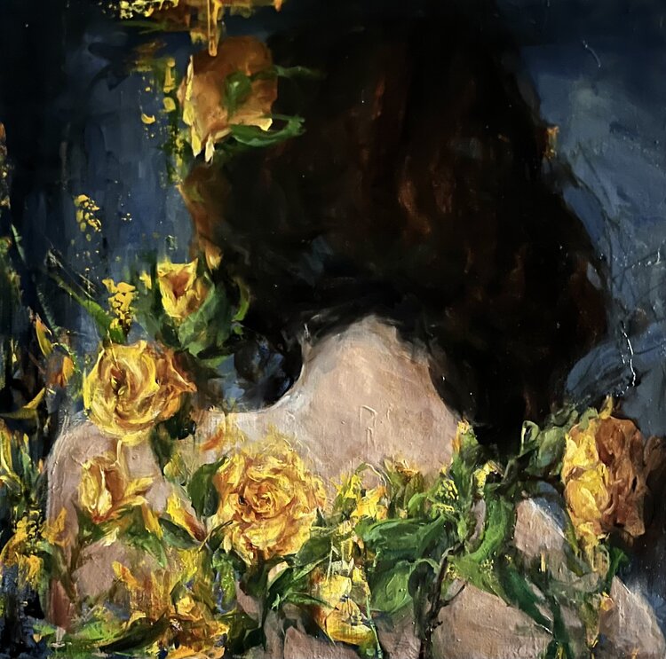 In diesem Ölgemälde habe ich meine Gefühle in die leuchtend gelben Rosen einfließen lassen, die sich um die nackten Schultern der Figur winden und eine zarte Spannung zwischen Zerbrechlichkeit und Wachstum verkörpern. Die impressionistischen Pinselstriche erzeugen eine geheimnisvolle Aura und laden den Betrachter ein, sowohl Einsamkeit als auch Hoffnung zu spüren. Dieses Werk wird jeden Raum mit Wärme und introspektiver Energie erfüllen – eine stille… Hommage an Widerstandskraft und Schönheit, die aus der Dunkelheit erwächst.