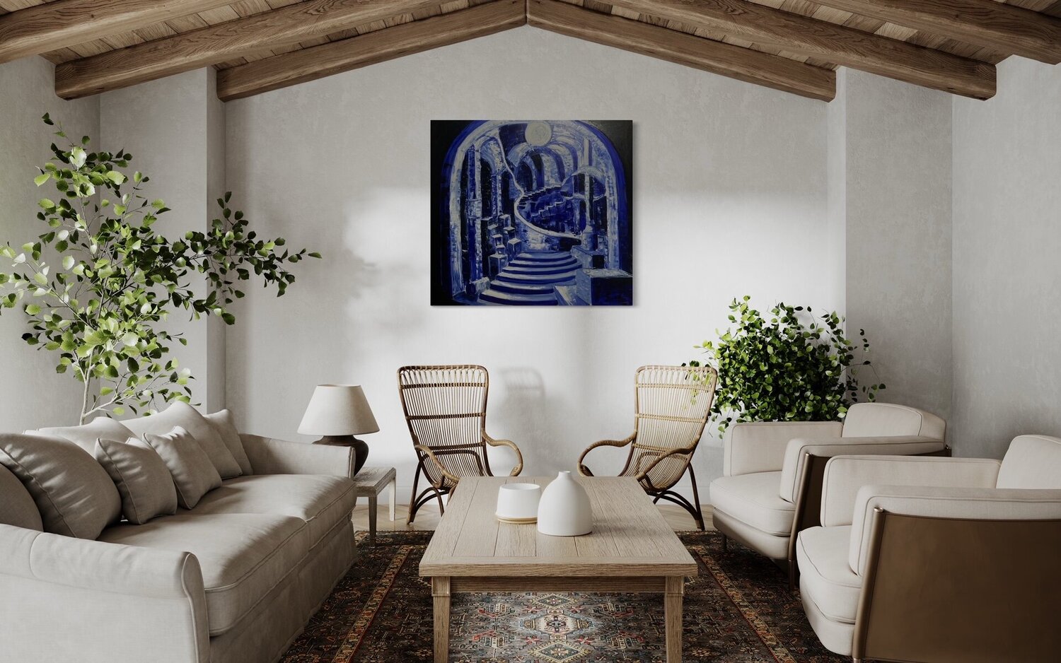 Ein Kunstliebhaber, Kauf getätigt am Mai 2025: ""Architectural Illusion"", Öl auf Leinwand , 35,4x35,4in