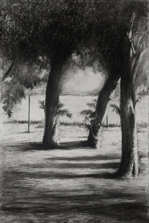 Mit Kohle erkundete ich die Grenze zwischen Sichtbarem und Unsichtbarem und schuf einen Raum, der zur Selbstbeobachtung einlädt. Ich wollte dieses Gefühl von Geheimnis und Stille einfangen, wo Realität und Metaphysik verschmelzen. Dieses Werk strahlt eine tiefe, ruhige und nachdenkliche Energie in Ihr Zuhause aus und erinnert Sie daran, dass hinter jedem Schatten etwas Größeres und Unbekanntes liegt.