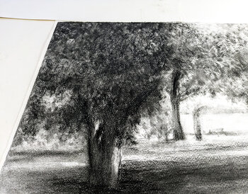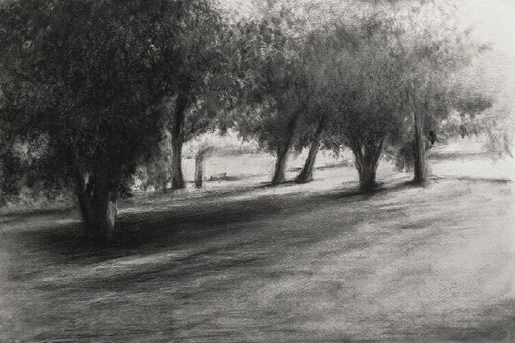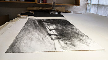 Dieses Werk ist eine tiefgründige Auseinandersetzung mit Licht und Schatten, bei der Kohle einen Raum formt, der das Sichtbare übersteigt. Ich wollte die metaphysische Essenz der eingefrorenen Zeit einfangen und den Betrachter einladen, die Ruhe und das Geheimnis dieses Augenblicks zu spüren. Ich stelle mir vor, dass dieses Werk in Ihrem Zuhause die Umgebung mit einer introspektiven und meditativen Energie erfüllt und eine Verbindung zum Ungreifbaren… herstellt.