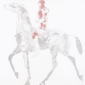 Der Stil von Elisabeth Frink zeichnet sich durch eine raue, strukturelle Qualität aus, wobei auf ihren Bronzeskulpturen oft Fingerabdrücke und Werkzeugspuren sichtbar sind. Diese Rohheit verleiht ihrer Arbeit Unmittelbarkeit und Ehrlichkeit und macht sie zutiefst ausdrucksstark und emotional nachhallend. Ihre ebenso fesselnden Drucke zeichnen sich durch kräftige Linien und ein dynamisches Spiel von Licht und Schatten aus, was die Intensität ihrer Motive zusätzlich betont.