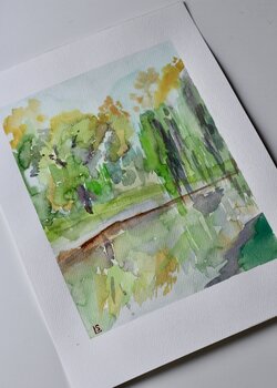 Mit zarten Aquarellen habe ich das sanfte, flüchtige Licht eines ruhigen Parks eingefangen. Die impressionistischen, halbabstrakten Striche vermitteln eine friedliche Harmonie zwischen dem leuchtenden Grün der Natur und sanften Reflexionen. Dieses Werk strahlt ruhige Energie aus und lädt Sie ein, die stille Schönheit und erfrischende Ruhe eines üppigen Rückzugsortes direkt in Ihrem Zuhause zu spüren.