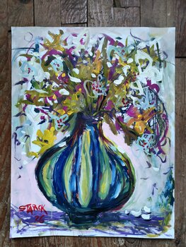 In diesem Gemälde wollte ich die lebendige Seele eines Blumenstraußes mitten im Winter einfangen. Die kräftigen Pinselstriche drücken die intensive Energie und die verborgene Freude aus, die die Natur selbst in scheinbarer Stille bewahrt. Dieses Zusammenspiel leuchtender und kontrastierender Farben erzeugt ein warmes und dynamisches Licht, das jeden Raum erhellt und zur Kontemplation und inneren Erneuerung einlädt.