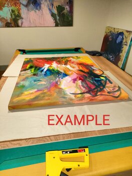 Werk auf Keilrahmen. Kann direkt aufgehängt werden. Rahmung auf Anfrage.