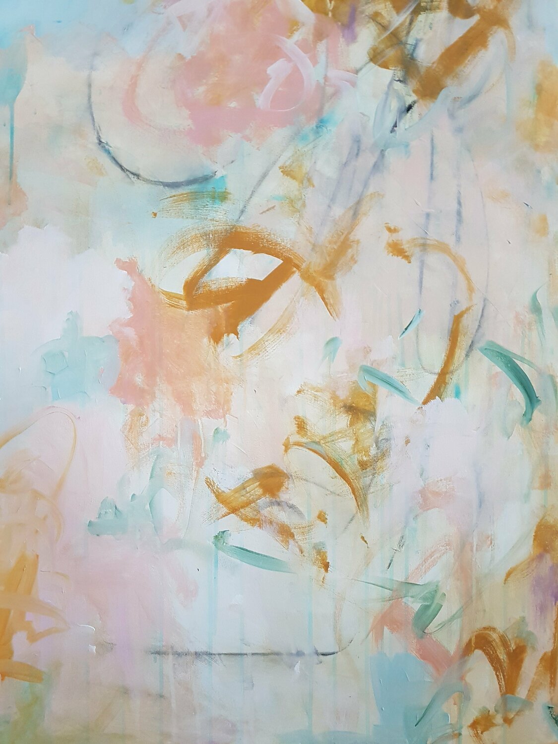 Poussières de sable du Sahara ist ein einzigartiges und originelles abstraktes Werk, das von der besonderen Leuchtkraft des 6. Februar 2021 aufgrund des Sandes am Himmel Frankreichs inspiriert wurde. Das Licht war ungewöhnlich, warmes Orange-Gelb veränderte die Farbwahrnehmung. Diese Arbeit wurde in Pastelltönen mit überwiegend sandigem Hintergrund ausgeführt.