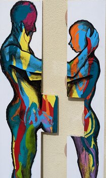 Bei der Schaffung dieser Arbeit habe ich einen Strudel von Emotionen kanalisiert: Die Kraft des Expressionismus verschmilzt mit der Lebendigkeit der Pop-Art, während das Acryl die Leinwand umarmt und den dynamischen… und farbenfrohen Austausch zwischen den Figuren einfängt. Sie verkörpern die menschliche Verbundenheit, das Bedürfnis nach Kontakt und die Erkundung der Tiefen unserer emotionalen Beziehungen. Diese Energie in die häusliche Umgebung zu bringen bedeutet, Leben, Wärme und einen kontinuierlichen Dialog der Empfindungen zu schaffen.