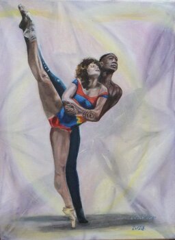 Für mich geht es in diesem Gemälde um mehr als nur Bewegung. Es geht darum, wie Gegensätze einander ergänzen – Mann und Frau, Schwarz und Weiß, Stärke und Zärtlichkeit. Ihre Gesichtsausdrücke sind ruhig, fast verliebt, und spiegeln ein tiefes Gefühl der Verbundenheit wider.… In diesem Moment ringen sie nicht um Balance; sie sind die Balance.