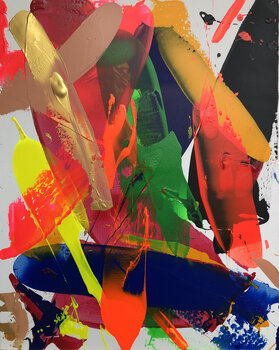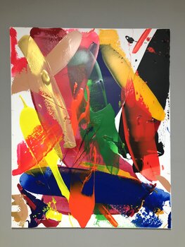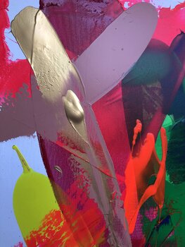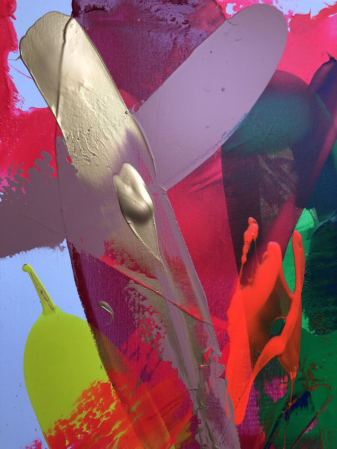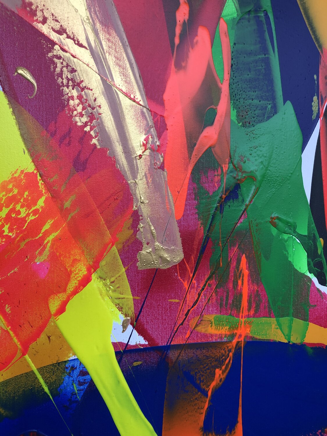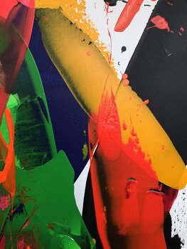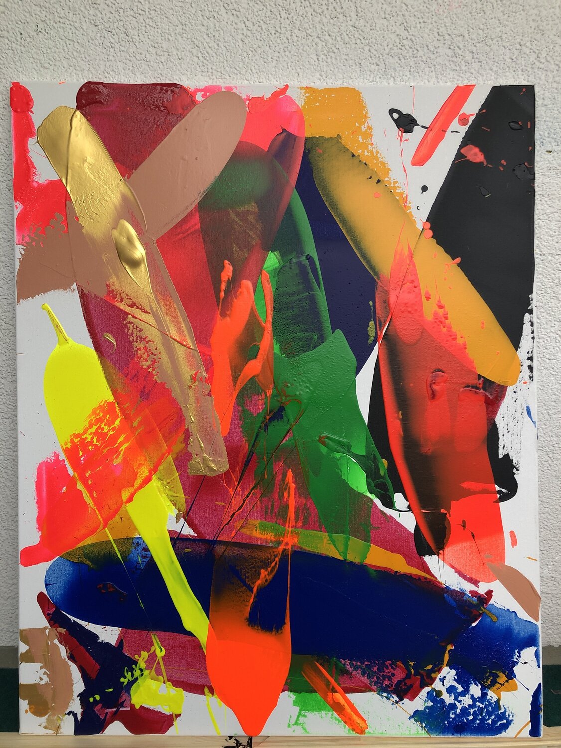 Ein Schwert kann zerstören oder erschaffen. Der Künstler hat mit dem japanischen Langschwert "Katana" dieses kraftvolle, abstrakte Kunstwerk erschaffen. Es ist durch mehrere Schwerthiebe entstanden. Dynamisch und voller Energie. Nehmen Sie etwas von dieser Energie beim betrachten des Gemäldes auf.