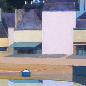 Eine mit Messer und Pinsel bearbeitete Ölkreation an einem symbolträchtigen Ort in Auray, wo ich wohne. Ich biete Ihnen eine echte Inszenierung des Hafens von Saint Goustan durch die Synthese von Mustern, die Wahl der Farben und die sehr persönliche Arbeit der Kontraste. Vor allem wollte ich das Licht hervorheben und diesem poetischen Ort, der wie eine Kulisse wirkt, einen theatralischen Effekt verleihen. Dieses expressionistische Gemälde vermittelt… dem Betrachter ein Gefühl der Ruhe und Gelassenheit. Um den französischen Dichter Christian Bobin zu zitieren: „Ein Maler ist jemand, der das Fenster zwischen der Welt und uns mit Licht wischt, mit einem Tuch aus Licht, das in Stille getaucht ist.“