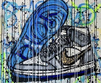 In meinen Kunstwerken habe ich die rohe Energie der Straßenkunst mit der Eleganz des Luxus vereint. Mit Acryl- und Sprühfarben habe ich jedem Strich eine dynamische Lebendigkeit verliehen. Es ist ein Tanz der Pop-Art voller Symbolik – ein Dialog zwischen High-Fashion-Raffinesse und dem rebellischen Geist der urbanen Kultur. Das Stück hängt nicht einfach; Es schwingt mit dem Puls des modernen Lebens mit und verleiht jedem Raum eine elektrisierende… Präsenz.
