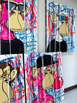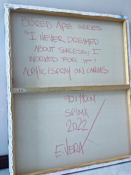 Auf dieser lebendigen Leinwand verschmelze ich Pop-Art und Expressionismus mit kräftigen Acrylfarben und den rauen Kanten von Graffiti-Sprühtechniken. Meine Arbeit dient als symbolische Erzählung, die die Essenz der Entschlossenheit und die Strapazen des Strebens nach Erfolg einfängt. Jeder Strich und jeder Farbspritzer zeugt von der Energie und Leidenschaft, die in die Verfolgung von Träumen gesteckt wird und über das bloße Streben hinausgeht und… eine visuelle Hymne hart erkämpfter Erfolge wird. Dieses Kunstwerk verkörpert einen Geist der Beharrlichkeit, der mit seiner beharrlichen Energie jeden Raum belebt.