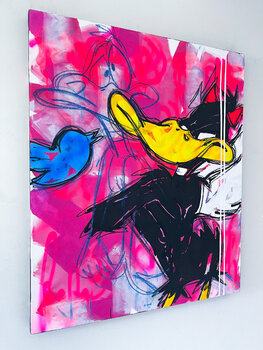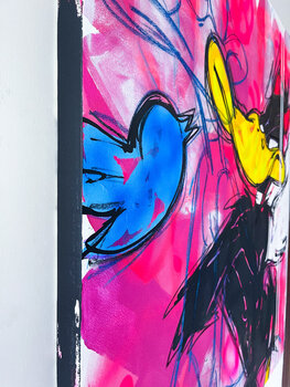 Mit kräftigen Strichen und leuchtenden Farben habe ich meine Seele in dieses Gemälde gesteckt. Sein Pop-Art-Flair trifft auf figurative Anmut und fängt den Tanz zwischen Chaos und Schönheit ein. Acryl und Kohle treffen auf Graffiti und Spray und schaffen eine visuelle Symphonie, die den rebellischen Geist widerspiegeln soll. Dieses Stück verkörpert den Nervenkitzel gewagter Possen und den Reiz des Unkonventionellen und ist bereit, jeden Raum mit… einem Ausbruch kühner Energie zu erfüllen.