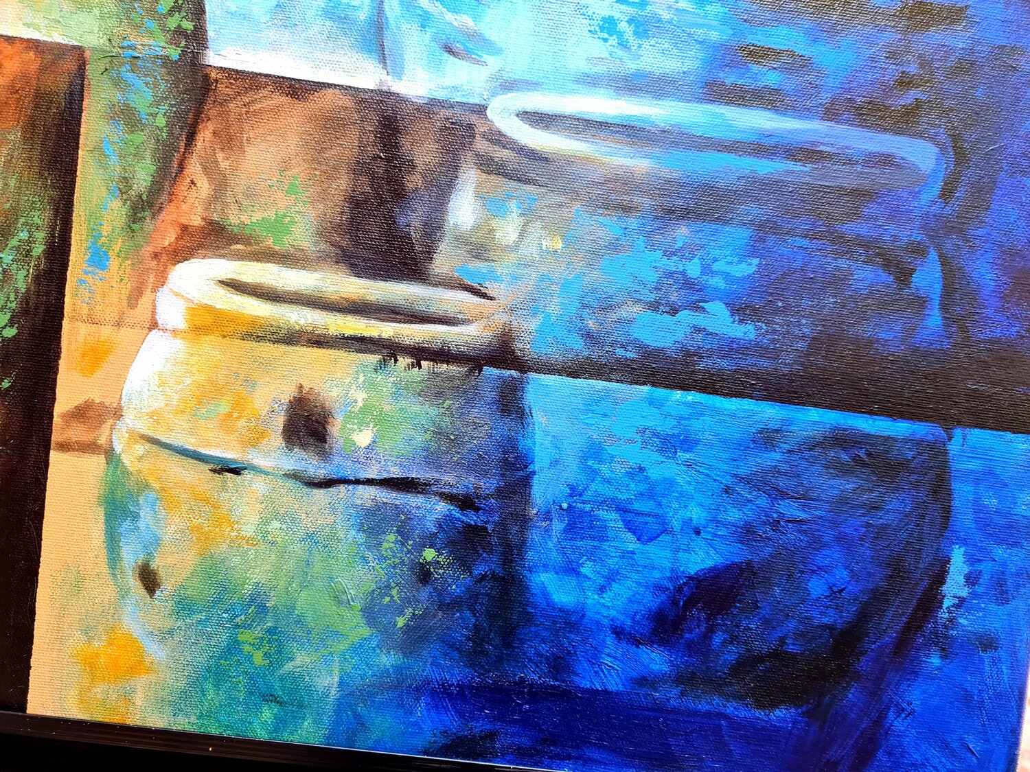 "JARRONES", ich begann 2018 mit der Arbeit an diesem Thema und wurde inspiriert, die Malerei meiner Anfänge, wie Stillleben, Vasen, gemalt mit meinem Pinselstrich von fast vierzig Jahren Evolution in meiner Malerei aufzugreifen. (mit den Formen und Farben von heute).