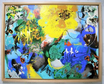 Intensive Farbharmonien tanzen über die Leinwand und werden durch freies Tropfen, Spritzen und fließende Linien zum Leben erweckt. Diese Techniken verkörpern die Energie der Natur und den Atem des Lebens. Acrylfarbe,… Tinte, Spray und andere Materialien verbinden sich zu einer reichen Textur, die die vielfältigen physikalischen Eigenschaften der Natur widerspiegelt.