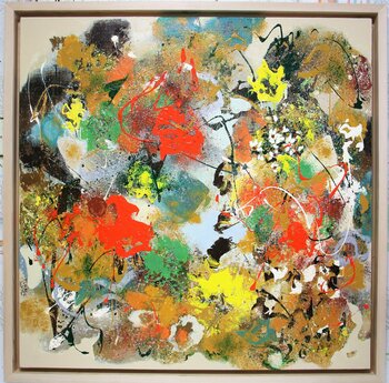 Dieses mittelgroße Gemälde ist ein wunderbares Statement und verleiht jedem Interieur einen Hauch zeitgenössischer Eleganz. Sein abstraktes Naturthema macht es zu einer vielseitigen Ergänzung für eine Vielzahl von Räumen, vom Wohnzimmer bis zum Büro.