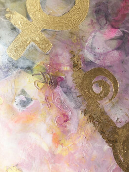 Üppige Pastell,- und Goldtöne fliessen, einzigartig mit goldene Ungarische Runen-Schrift und universelle Zeichen und Symbole durch und durchwoben.