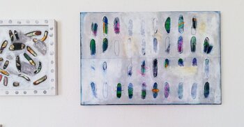 Evelyn Marschall-Gebhard arbeitet mit Acryl, Mischtechnik und Collage und bringt einen reichen Hintergrund an künstlerischem und psychologischem Studium ein.