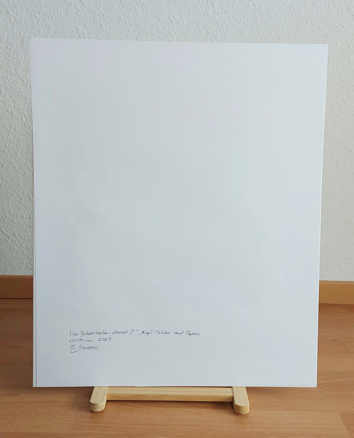 In meinem Werk verbinde ich Acryl, Collage und Indische Tinte, um eine Melodie der herbstlichen Transformation zu schaffen. Diese Ausdrucksform in Abstraktion und Impressionismus fängt die explosive Vitalität des Herbstes ein; leuchtende Orangetöne und tiefgeschichtete Texturen ziehen den Betrachter in eine Welt voller Bewegung und Veränderung. Die energiegeladenen Spritzer und dynamischen Wirbel symbolisieren das stete Werden und Vergehen in der… Natur — ein visuelles Fest, das die Sinne anregt und gleichzeitig zu tiefem Nachdenken anspornt. Maße mit Passepartout 60x50 cm. Angebot ohne Rahmen und Staffelei.