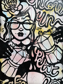 - Technik : Acryl, Farbspray auf Leinwand
