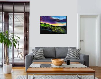 Mit kräftigen Acrylfarben habe ich die wilde Energie eines stürmischen Himmels eingefangen, der über einer lebendigen Landschaft tobt. Die abstrakten Formen spiegeln die Kraft der Natur, während die intensiven Farben Emotionen wecken.