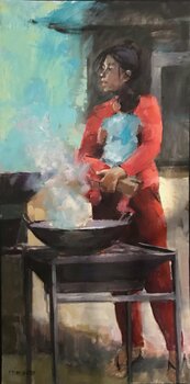 In dieser Ölarbeit habe ich eine alltägliche Intimität eingefangen, die Einsamkeit und Kontemplation hervorruft. Meine subtile Farbpalette und meine ausdrucksstarken Pinselstriche zielen darauf ab, mit dem Betrachter in Kontakt zu treten und ihm ein Gefühl der Ruhe und inneren Besinnung zu vermitteln. Es wird Ihren Raum mit einer Energie erfüllen, die von Sanftheit und Menschlichkeit geprägt ist, eine Hommage an die Einfachheit des Lebens.