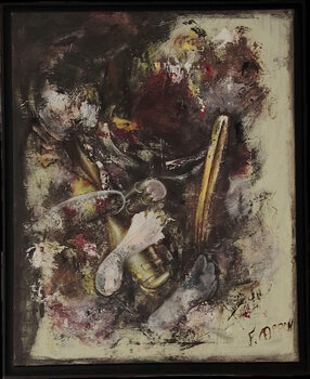 Frédéric Capron, ein Maler, der zunächst die Reproduktion alter Meister erlernte, bevor er sich seinen eigenen Werken widmete, arbeitet vorwiegend mit Ölfarben. Virtuos setzt er Wattestäbchen, Lappen und feine Pinsel ein und improvisiert ohne Skizzen, um Verbrennungsmotoren und Blasinstrumente zu vereinen und technische Linien mit weiblichen Kurven zu verschmelzen. Seine Werke sind von intensiver Emotion durchdrungen und zelebrieren die Kraft des Atems, ob menschlich oder mechanisch, sowie die Resonanz der Schönheit in der Materie. Seine größten Arbeiten erfordern über 500 Arbeitsstunden.