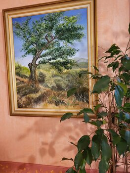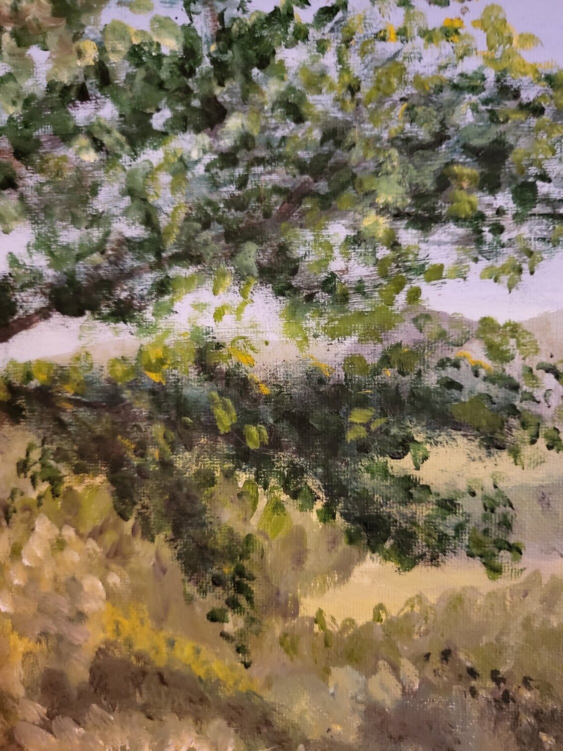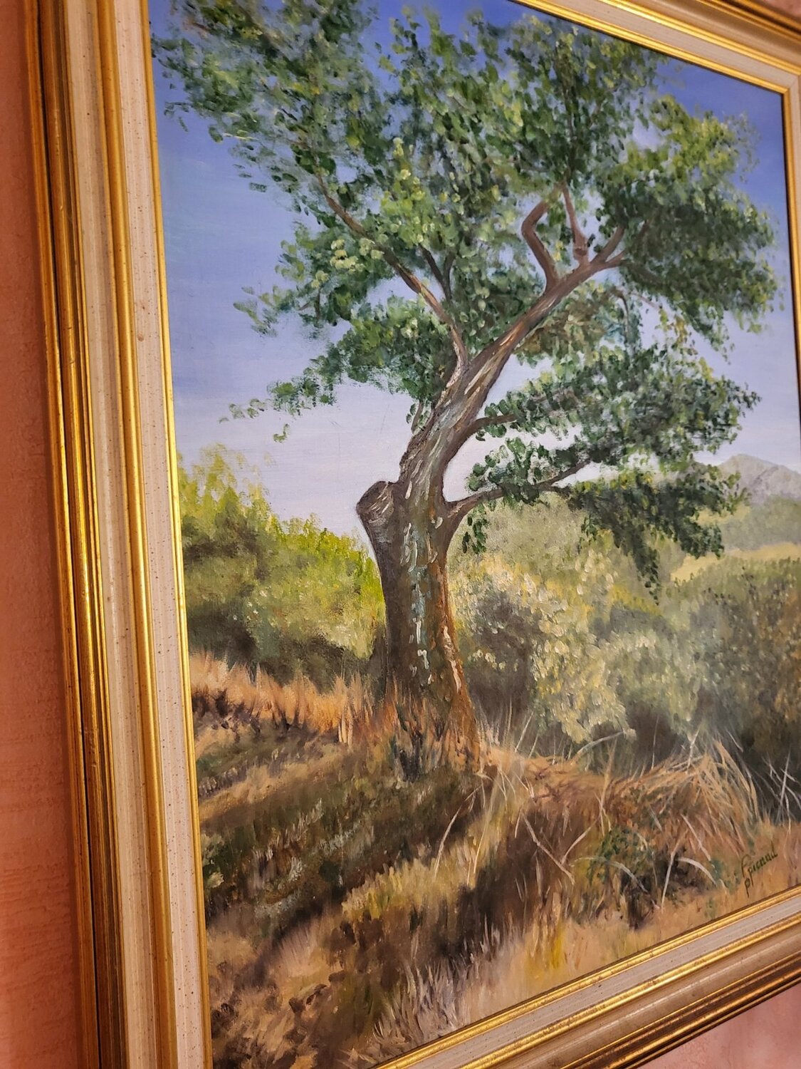 In dieser Arbeit wollte ich die zeitlose Essenz einer Landschaft einfangen, in der der alte Baum als Zeuge der Geschichte und der vergehenden Jahreszeiten steht. Unter Verwendung von Acryl und Öl habe ich figurative Techniken mit Impressionismus kombiniert, um nicht nur die Form, sondern auch die Seele dieser Naturszene hervorzurufen. Die warmen Farben und die reiche Textur sollen eine sanfte Nostalgie hervorrufen, eine Brücke zwischen Vergangenheit… und Gegenwart schlagen und jeden Betrachter zu einem Moment der Besinnung und inneren Ruhe einladen.