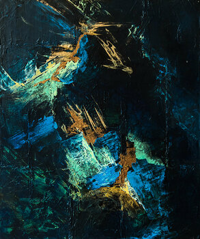 Ein Kunstliebhaber, Kauf getätigt am Juli 2024: "Les trois Orbes", Acryl, Öl auf Leinwand , 23,6x31,5in